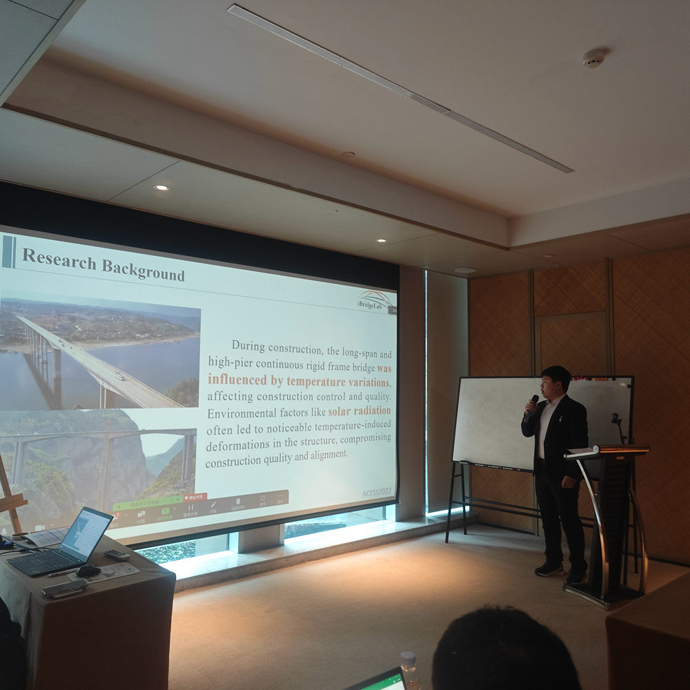 11月25日下午,2022级研究生李亮亮在成都参加了第二届先进土木工程与智能结构国际会议(ACESS2023),并就研究成果Study on the influence of temperature on the verticality of thin-walled high pier and the control method based on measured temperature完成了口头报告。